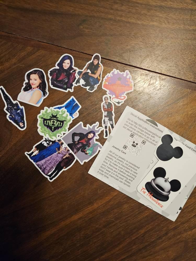 Stickers include Mal, Evie, Jay, Carlos and more. They are weather resistant. Use them on your pencil case, luggage, scrapbooks, diaries, notepads, gift wrap, calendar, etc. They are also great for card making, as party decorations and in gift bags and loot bags! Make your belongings stand out with these stickers! Great for Disney fans!