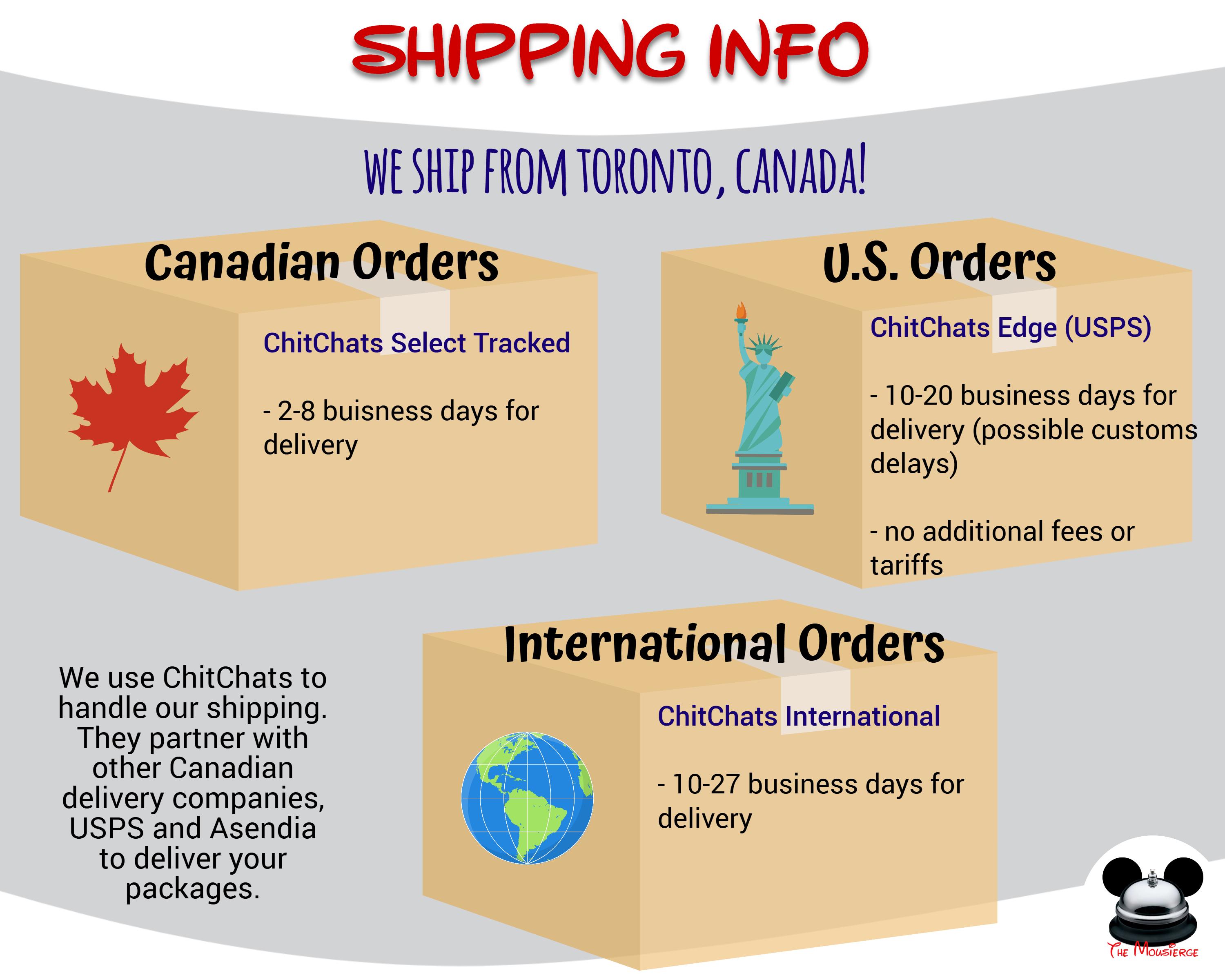 Default shipping for decals, window clings and confetti is regular mail, without tracking. You will receive confirmation that your order has been shipped but you won't be able to track it online. You can upgrade your order to include tracking on your shipping at checkout. Larger items like jewelry and ears ship with online tracking in Canada and the U.S. automatically.