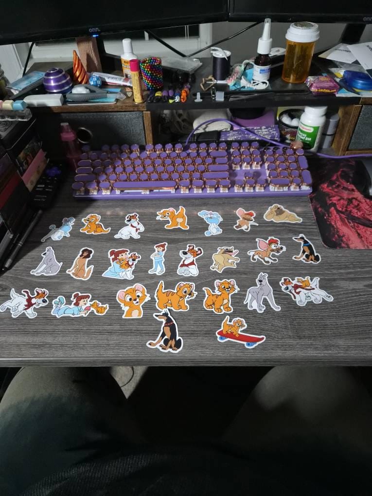 Personalize your laptop, phone, journal, or any flat surface with these Oliver and Company die cut, vinyl character stickers! Choose a pack of either 5, 10 or 20 random fun, high quality, bright, colourful vinyl Oliver and Company stickers. There will not be any repeats within a 5, 10, or 20 pack. Sticker packs will be assorted and no sticker is guaranteed.