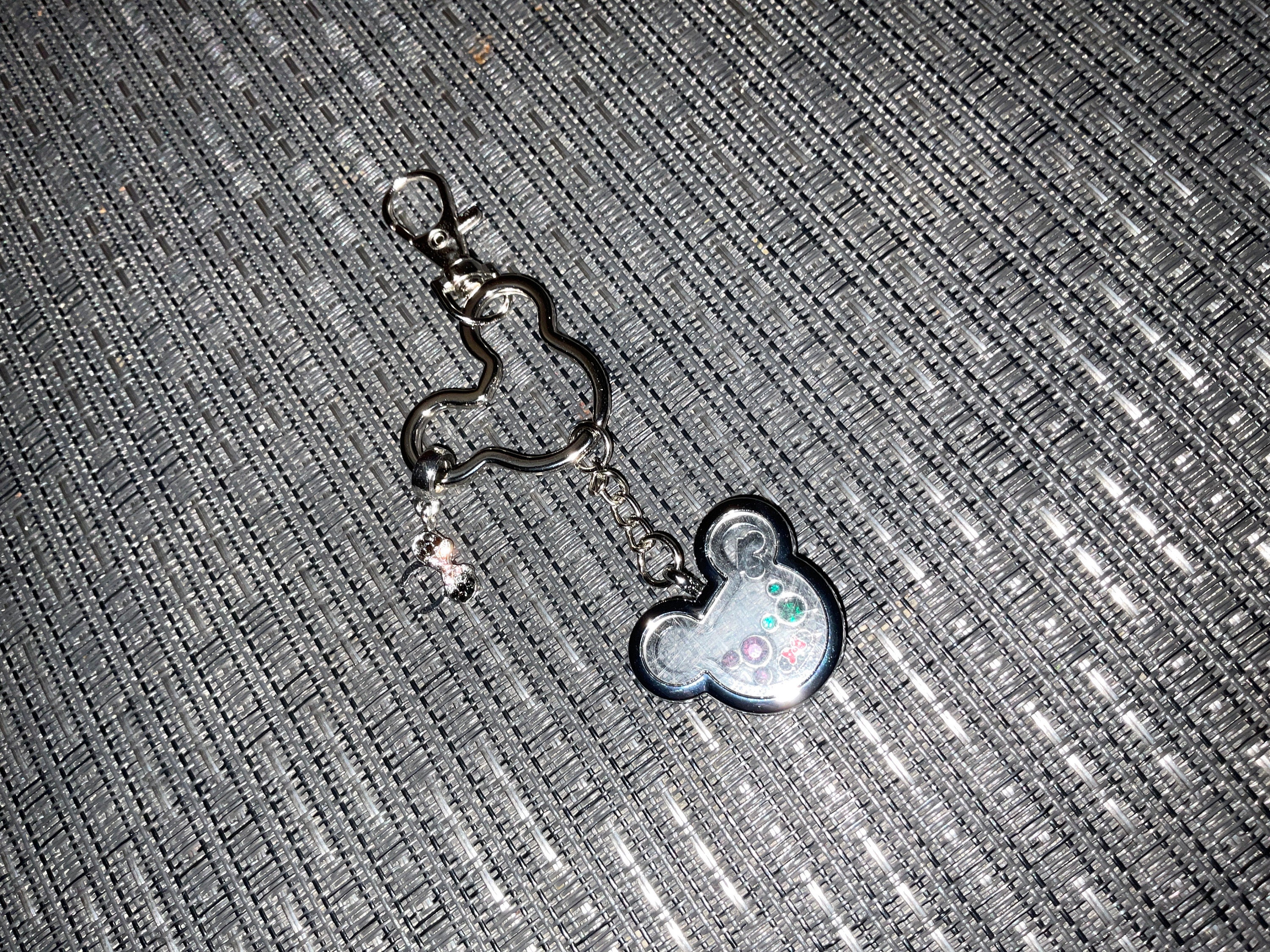 Show your love of Disney with this beautiful floating charm keychain or purse charm, featuring your choice of two birthstone Mickey charms and two Mickey and/or Minnie eat hats. You can choose 2 Mickeys, 2 Minnies or one of each. The locket hangs from a hidden Mickey key ring with a lobster clasp and Minnie ears charm in your choice of colour. Choose between the silver or silver & clear rhinestone setting for the locket. They both look great!