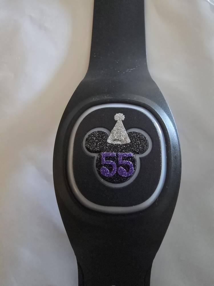 Personalize your MagicBand with this Mickey with a birthday hat and age, sized perfectly for the large Mickey located on the middle of your MagicBand. It's the perfect way to celebrate your birthday at Disney World. It's made from durable, sticky vinyl and comes with an alcohol wipe to clean your MagicBand before placing it so it sticks firmly.
